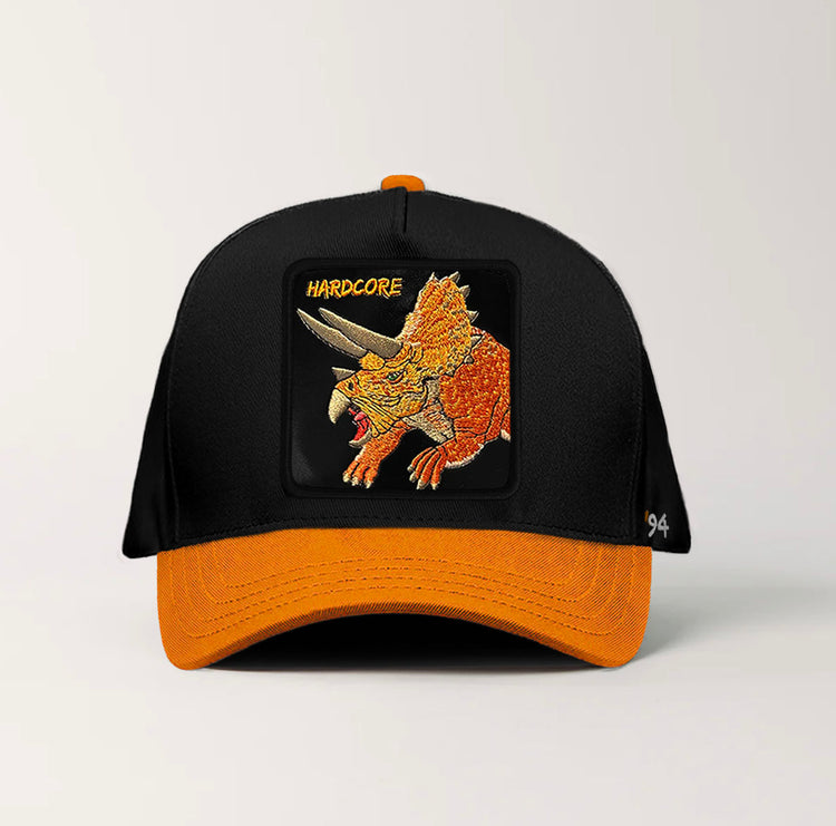 Triceratops "Hardcore" Snapback Hat Black/Orange